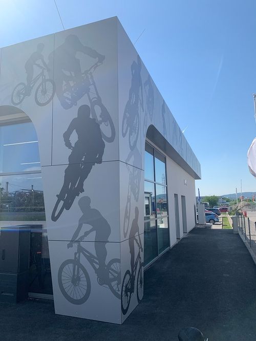 Der Bauherr ist mit der Planungsaufgabe an uns herangetreten, wir sollen einen Verkaufs-und Präsentationsraum für Fahrräder planen. Es gingen zahlreiche Besprechungen und Entwurfspräsentationen voraus, ehe wir im Oktober 2021 die baubehördliche und gewerberechtliche Bewilligung erhielten. Das Gebäude soll im Innenraum einen entsprechenden Rahmen für die Präsentation der Fahrräder und nach Außen einen repräsentativen Charakter mit Erkennungsmerkmal darstellen. Baubeginn war Oktober 2021, Fertigstellung im April 2022. Bauzeit insgesamt 7 Monate – rekordverdächtig, in einer äußerst schwierigen und unsicheren Zeit wie dieser!